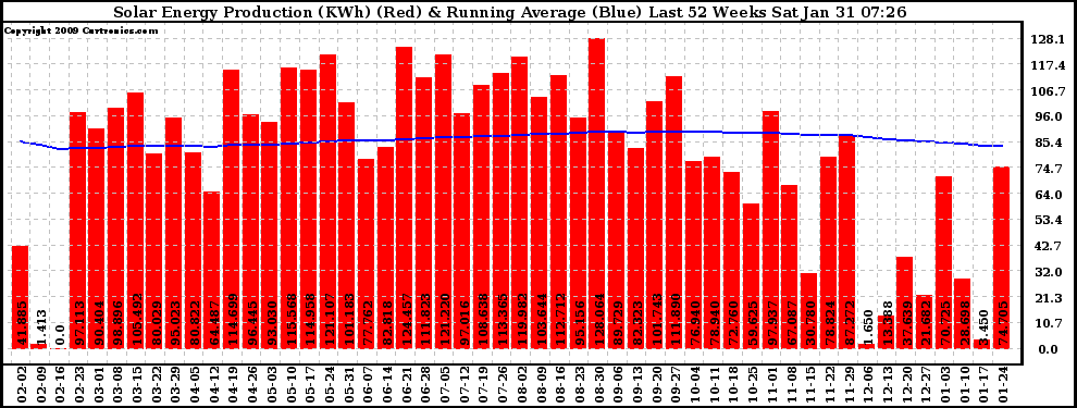 20090131 Weekly Solar Energy Production Running Average Last 52 Weeks