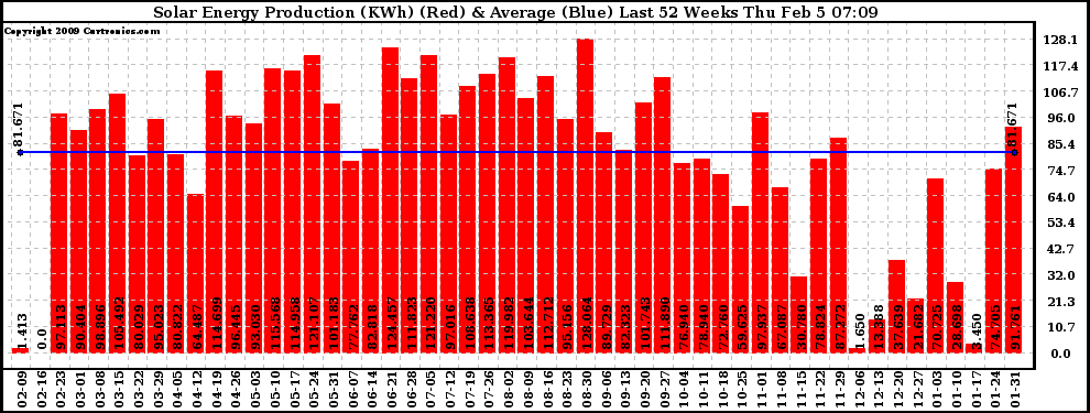 20090205 Weekly Solar Energy Production Last 52 Weeks
