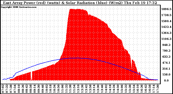 20090219 East Array Power Output & Solar Radiation