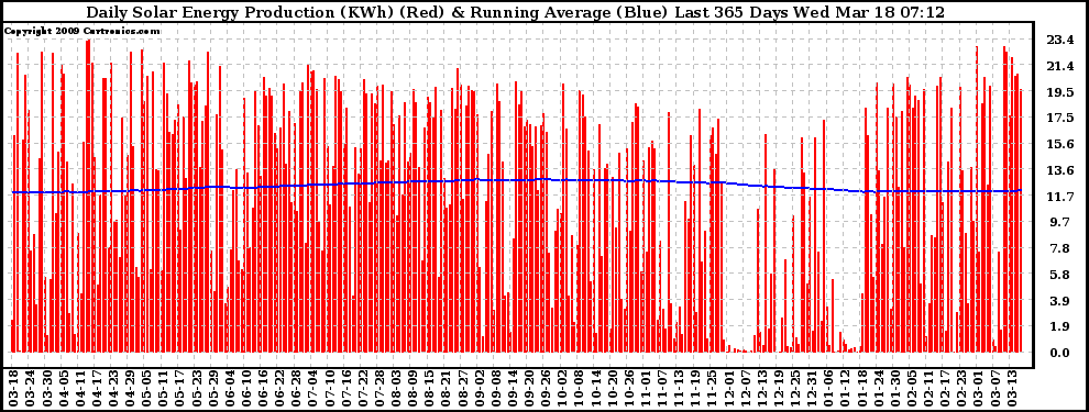 20090318 Daily Solar Energy Production Running Average Last 365 Days