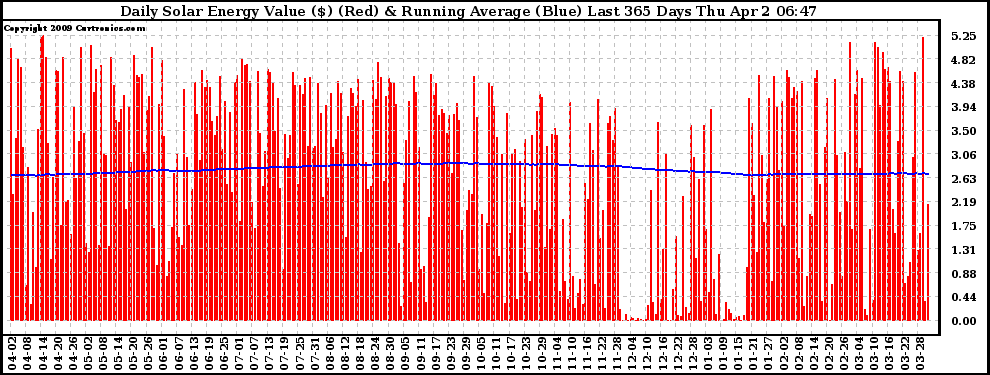 20090402 Daily Solar Energy Production Value Running Average Last 365 Days