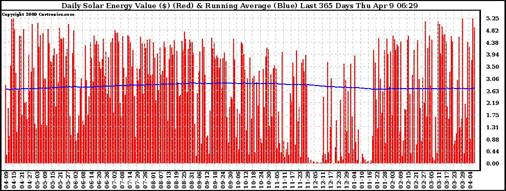 20090409 Daily Solar Energy Production Value Running Average Last 365 Days