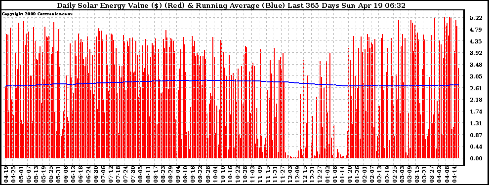 20090419 Daily Solar Energy Production Value Running Average Last 365 Days