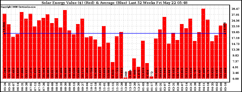 20090522 Weekly Solar Energy Production Value Last 52 Weeks