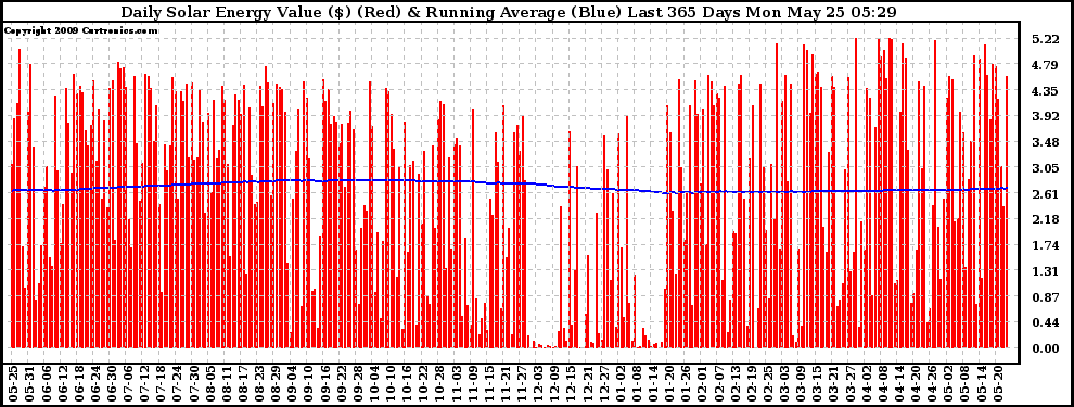 20090525 Daily Solar Energy Production Value Running Average Last 365 Days
