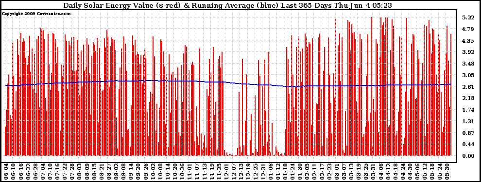 20090604 Daily Solar Energy Production Value Running Average Last 365 Days