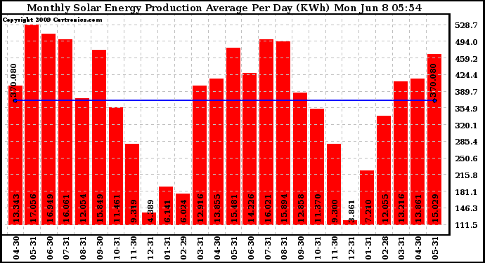 20090608 Monthly Solar Energy Production Average Per Day (KWh)