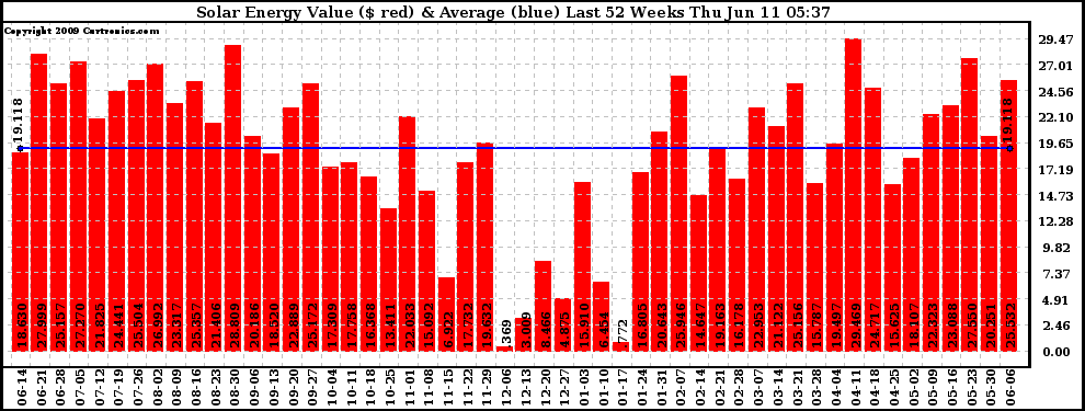 20090611 Weekly Solar Energy Production Value Last 52 Weeks