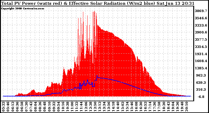20090613 Total PV Panel Power Output & Effective Solar Radiation