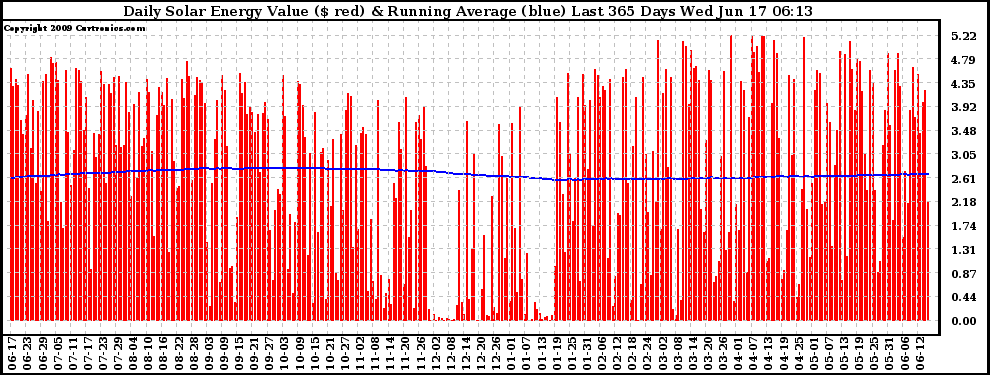 20090617 Daily Solar Energy Production Value Running Average Last 365 Days