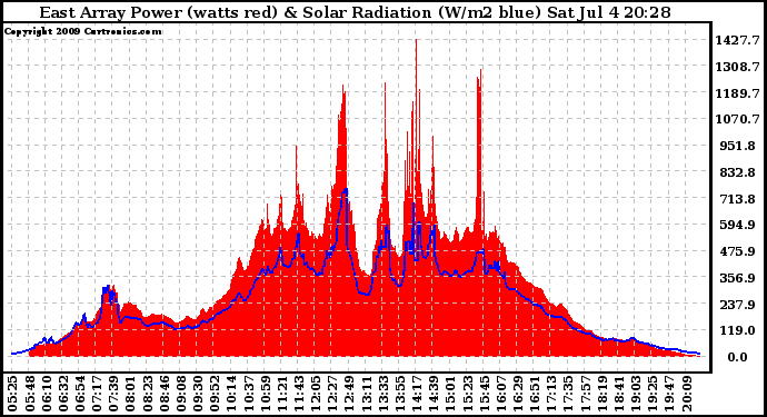 20090704 East Array Power Output & Solar Radiation
