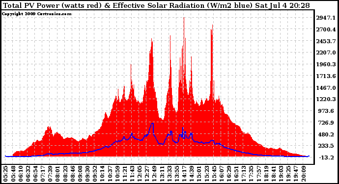 20090704 Total PV Panel Power Output & Effective Solar Radiation