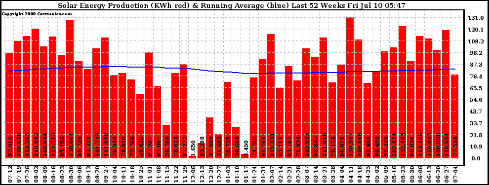 20090710 Weekly Solar Energy Production Running Average Last 52 Weeks
