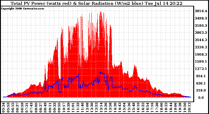 20090714 Total PV Panel Power Output & Solar Radiation