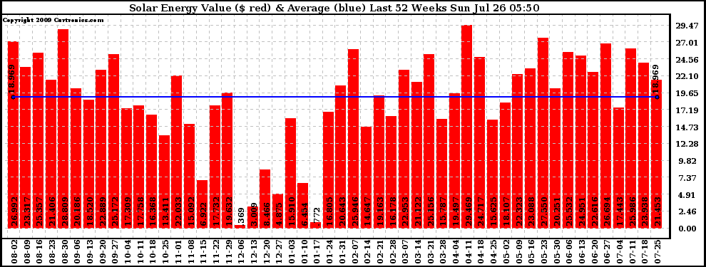 20090726 Weekly Solar Energy Production Value Last 52 Weeks