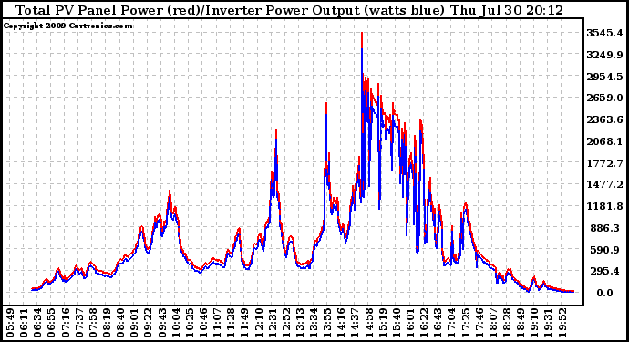 20090730 PV Panel Power Output & Inverter Power Output