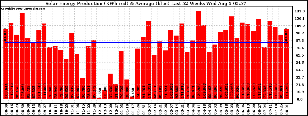 20090805 Weekly Solar Energy Production Last 52 Weeks
