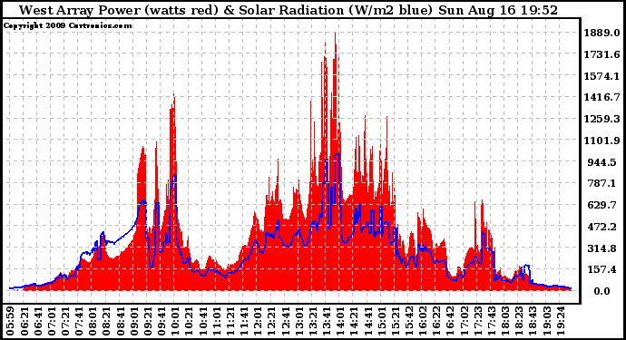 20090816 West Array Power Output & Solar Radiation