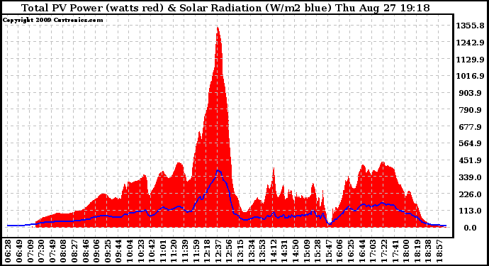 20090827 Total PV Panel Power Output & Solar Radiation