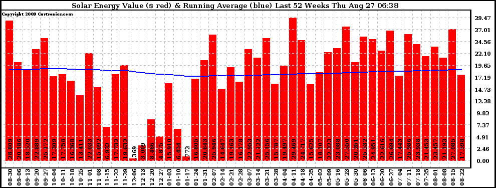20090827 Weekly Solar Energy Production Value Running Average Last 52 Weeks