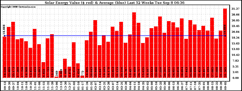 20090908 Weekly Solar Energy Production Value Last 52 Weeks