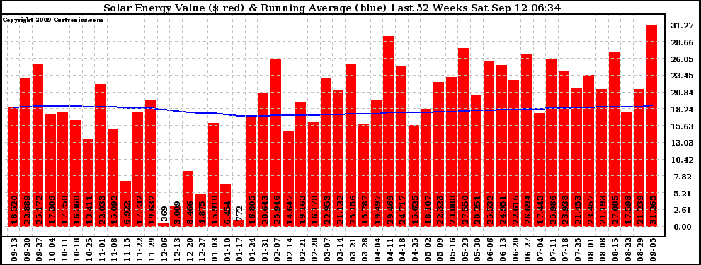 20090912 Weekly Solar Energy Production Value Running Average Last 52 Weeks