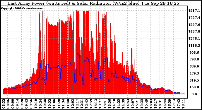 20090929 East Array Power Output & Solar Radiation