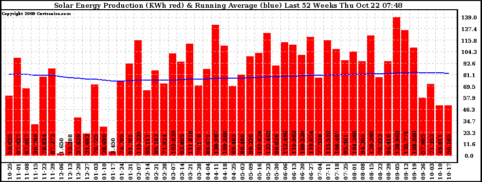 20091022 Weekly Solar Energy Production Running Average Last 52 Weeks
