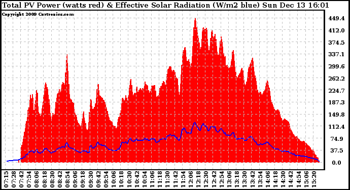 20091213 Total PV Panel Power Output & Effective Solar Radiation