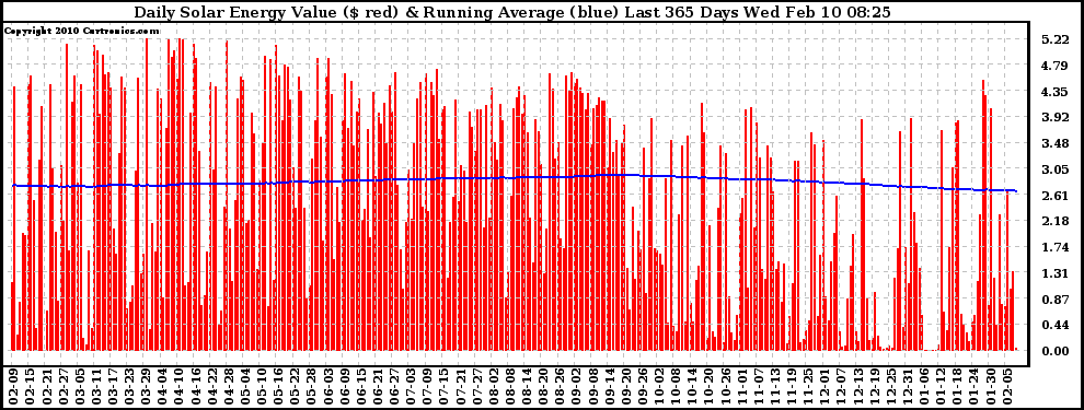 20100210 Daily Solar Energy Production Value Running Average Last 365 Days