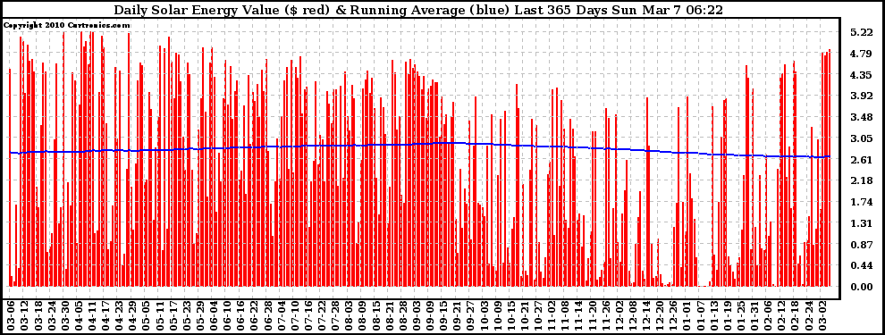 20100307 Daily Solar Energy Production Value Running Average Last 365 Days