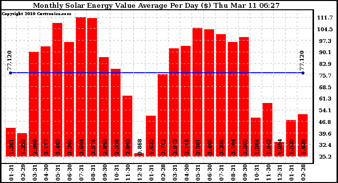 20100311 Monthly Solar Energy Value Average Per Day ($)