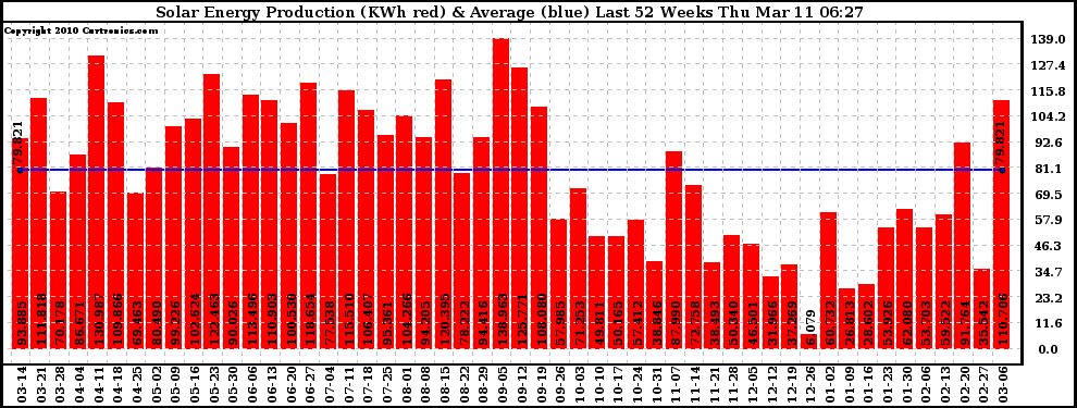20100311 Weekly Solar Energy Production Last 52 Weeks