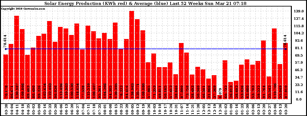 20100321 Weekly Solar Energy Production Last 52 Weeks