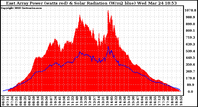 20100324 East Array Power Output & Solar Radiation