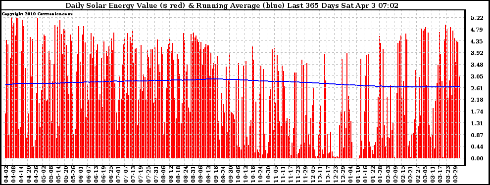 20100403 Daily Solar Energy Production Value Running Average Last 365 Days