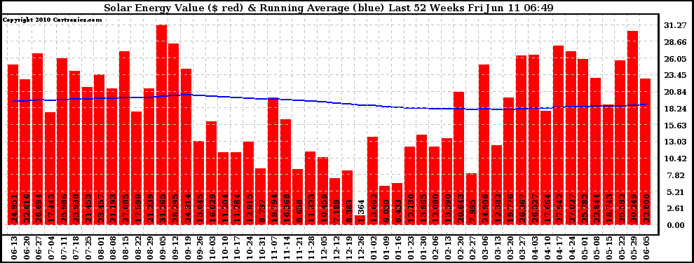 20100611 Weekly Solar Energy Production Value Running Average Last 52 Weeks