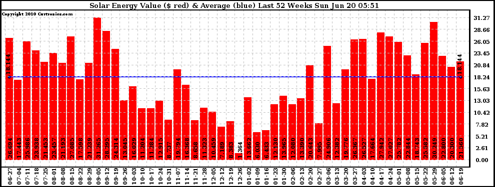 20100620 Weekly Solar Energy Production Value Last 52 Weeks