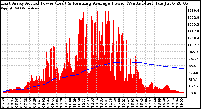 20100706 East Array Actual & Running Average Power Output