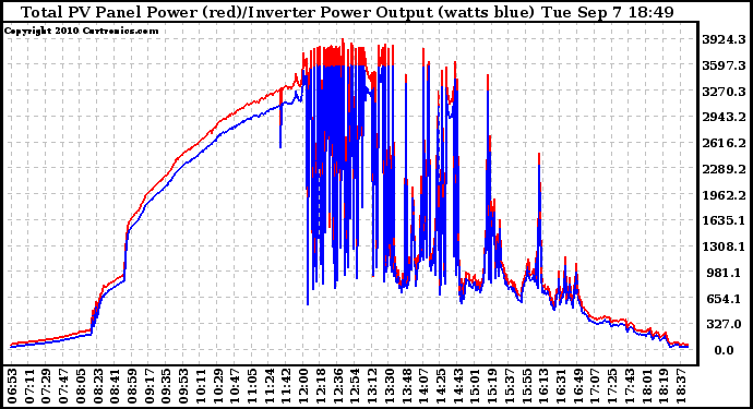 20100907 PV Panel Power Output & Inverter Power Output