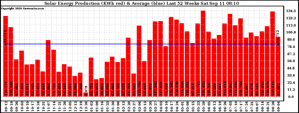 20100911 Weekly Solar Energy Production Last 52 Weeks