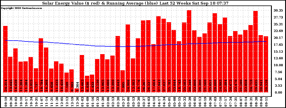 20100918 Weekly Solar Energy Production Value Running Average Last 52 Weeks