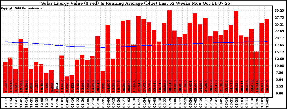 20101011 Weekly Solar Energy Production Value Running Average Last 52 Weeks