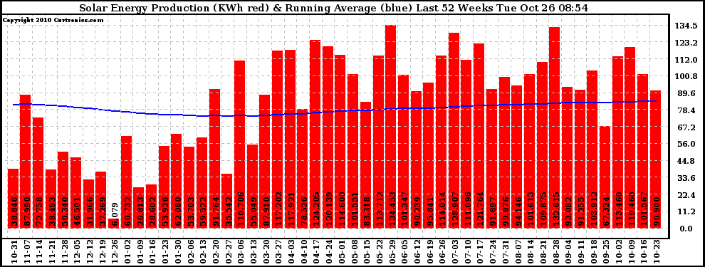 20101026 Weekly Solar Energy Production Running Average Last 52 Weeks