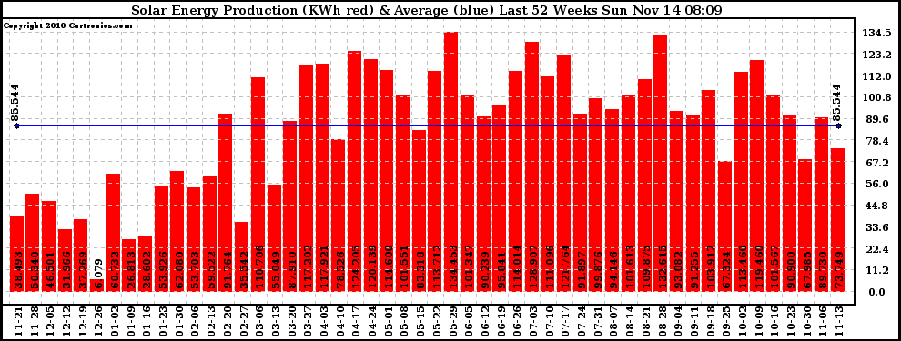20101114 Weekly Solar Energy Production Last 52 Weeks