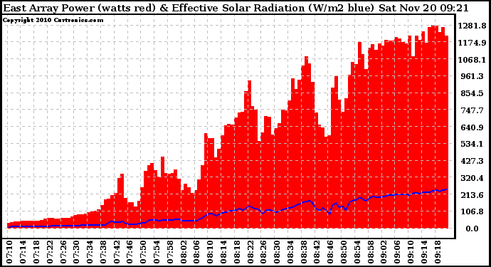 20101120 East Array Power Output & Effective Solar Radiation