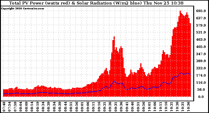 20101125 Total PV Panel Power Output & Solar Radiation