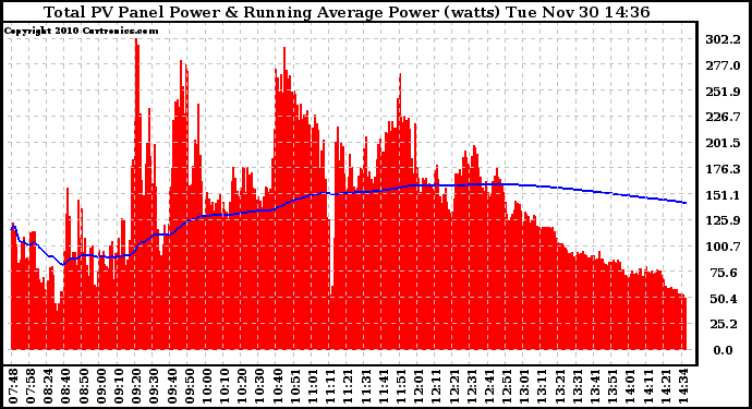 20101130 Total PV Panel & Running Average Power Output