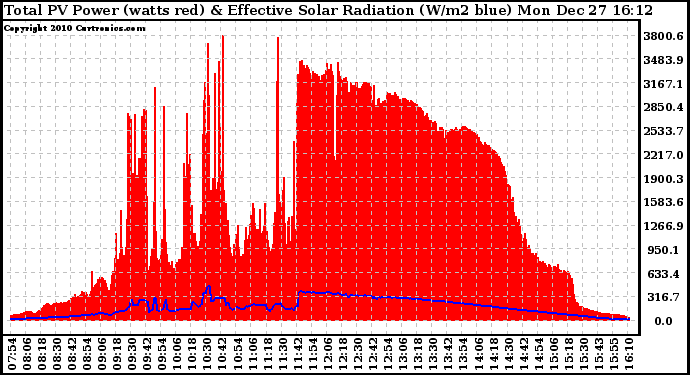 20101227 Total PV Panel Power Output & Effective Solar Radiation