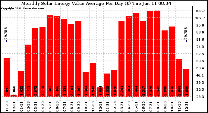20110111 Monthly Solar Energy Value Average Per Day ($)
